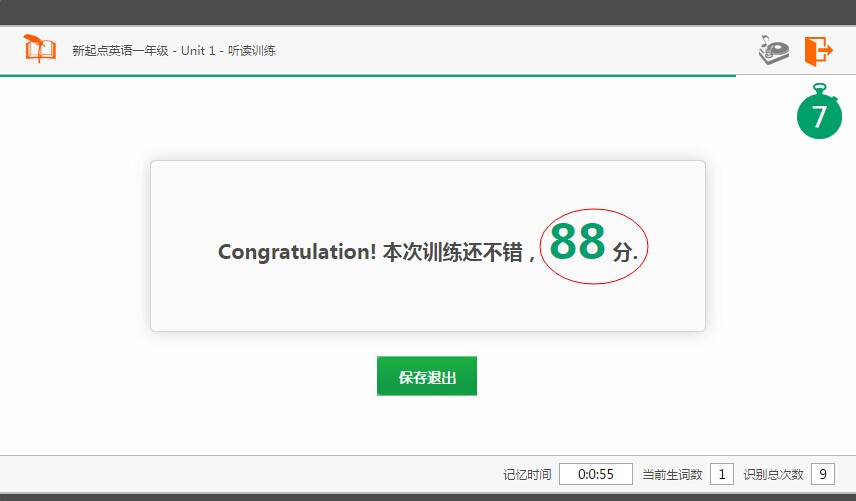 如上图点击Unit 1后,学习窗口将打开,点击“开始学习”就可以开始学习了。学习过程中,窗体如图所示:
